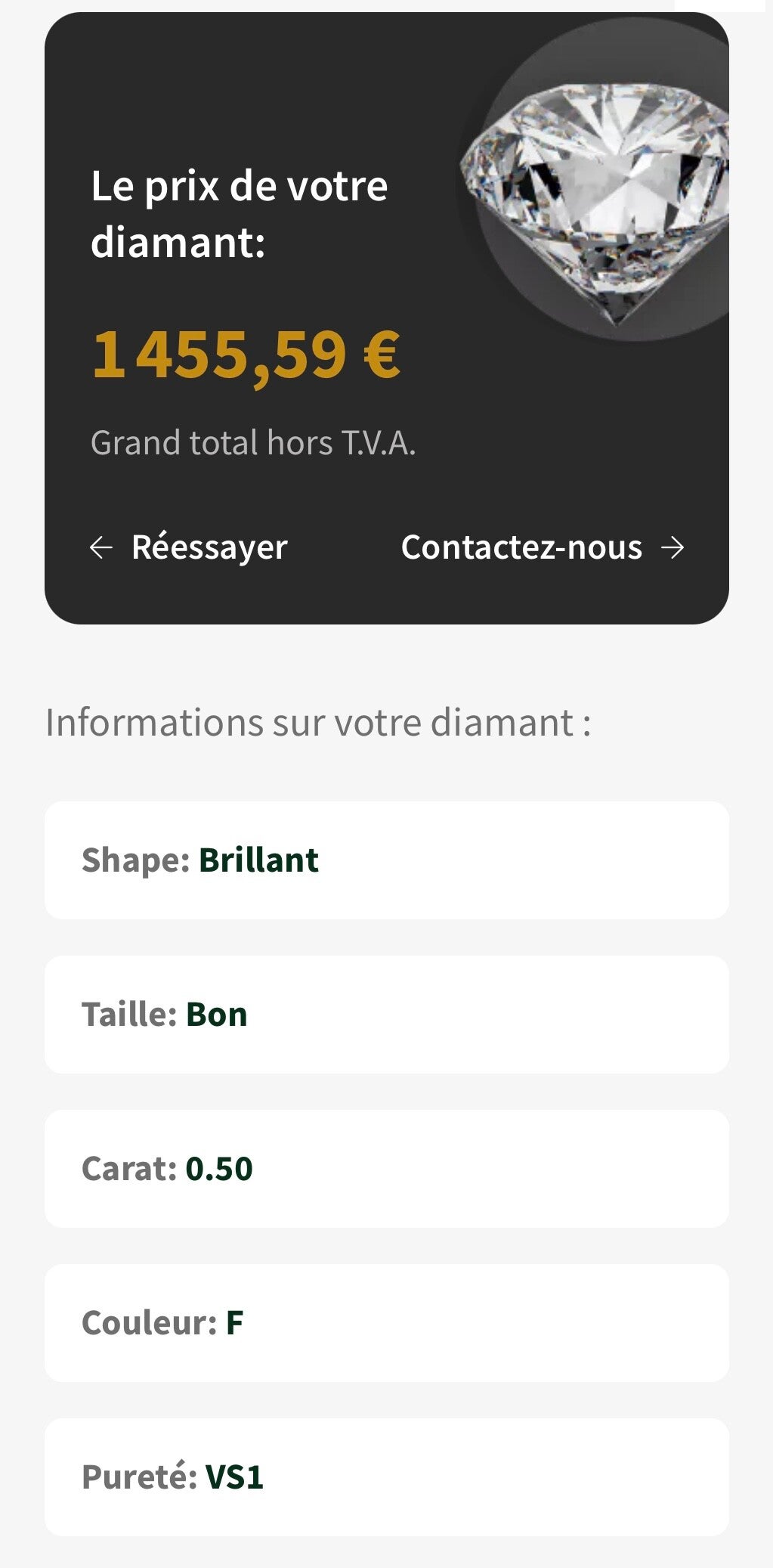 Voici une estimation des prix de Diamants Naturels Ronds (taille brillante),
